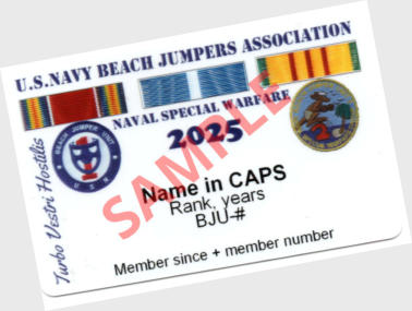 For 2025 membership dues will only be accepted via check or money order. We transitioned away from the PayPal online service in April 2023. This was due in part to changes in their policies beginning in the year 2023.OUR DUES IS STILL ONLY $25.00/yr.Make check or M.O. payable to:U.S. Navy Beach Jumpers Assoc.357 Sparrow Branch CircleSaint Johns, FL 32259-4543In order to attend reunions, make certain purchases from ships store, be given access to the 'members only' section of this website, request letters of recommendation, association certificates, etc., you must be a 'member in good standing'. This requires paying your annual dues. Upon payment of your 2025 dues, your membership status will be updated on the membership roster.Thank you,The Board of Directors Chairmanchairman@beachjumpers.com